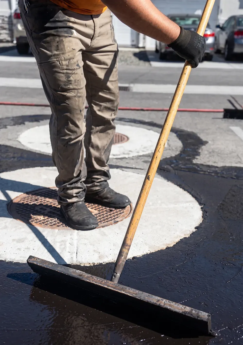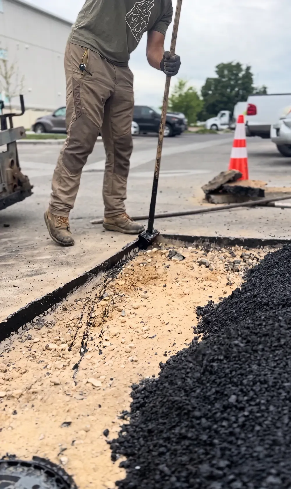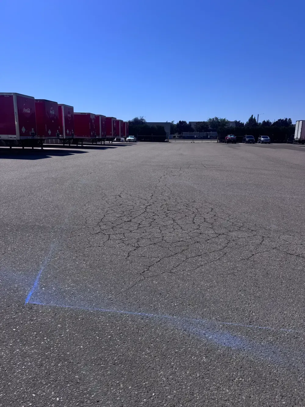 At the Coca-Cola distribution facility, our crew carried out asphalt patching to restore the integrity of the pavement. The work involved cutting out deteriorated areas, removing cracked asphalt, and replacing them with new hot mix asphalt. Each section was carefully leveled and compacted with professional equipment to ensure durability and a smooth driving surface. This repair helps extend the lifespan of the pavement and supports the heavy daily traffic of delivery trucks and warehouse operations.
