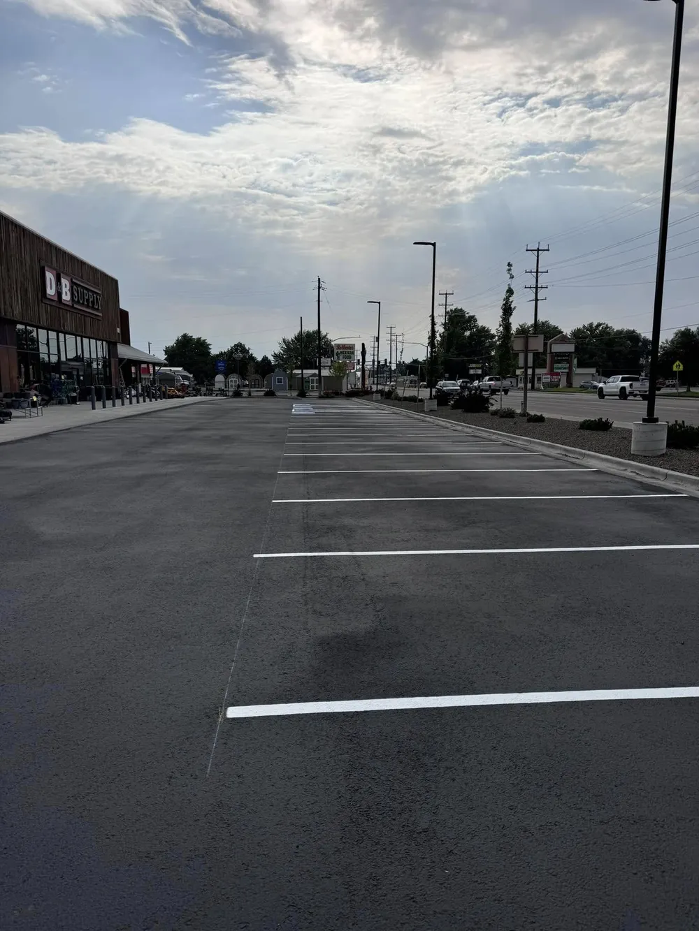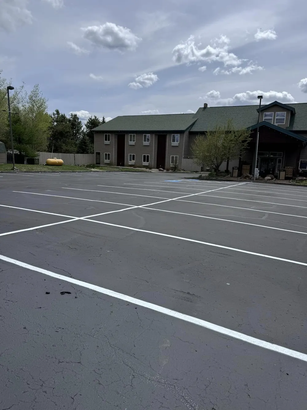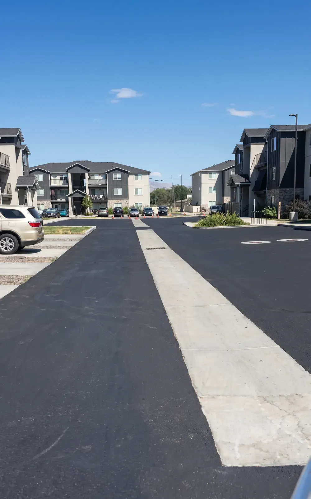 Select Coatings Idaho provided seal coating and line striping services at Farmstead Apartments. The freshly coated asphalt surface gives the property a smooth, clean appearance while protecting it against weather damage and everyday wear. Clear, newly painted parking lines and markings enhance organization, improve safety for residents and visitors, and extend the lifespan of the pavement. This project reflects our commitment to delivering long-lasting results and keeping community spaces looking their best.