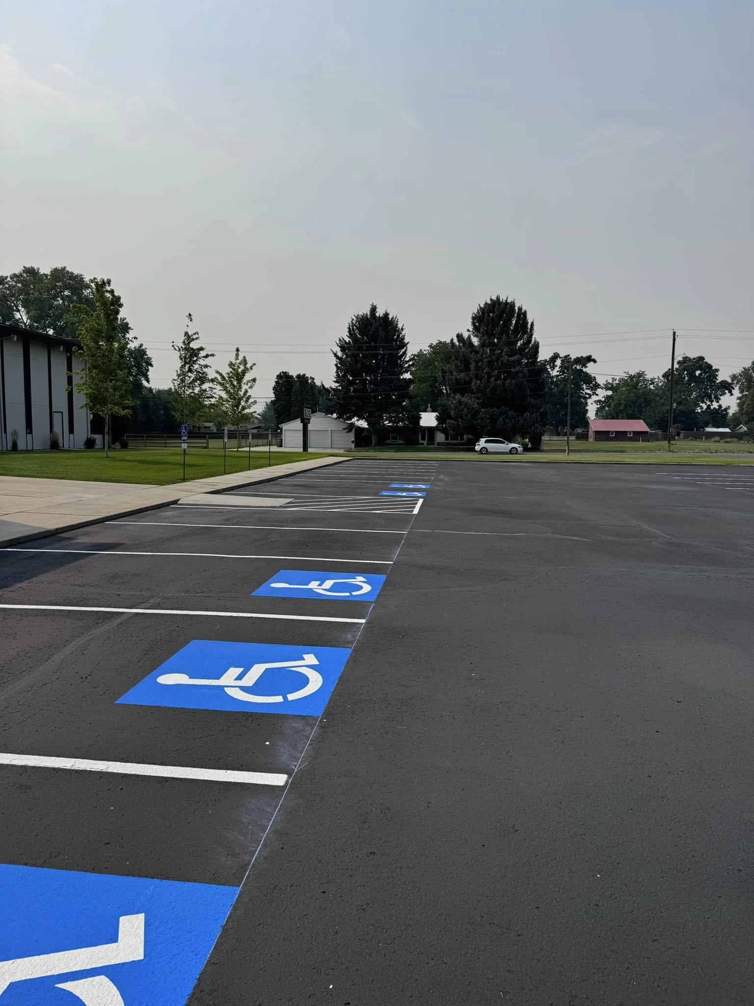 This project was completed with precision using our professional parking lot striping and sealcoating services in Caldwell, ID—restoring the space with crisp lines, enhanced safety, and a cleaner, more welcoming look for all who visit.